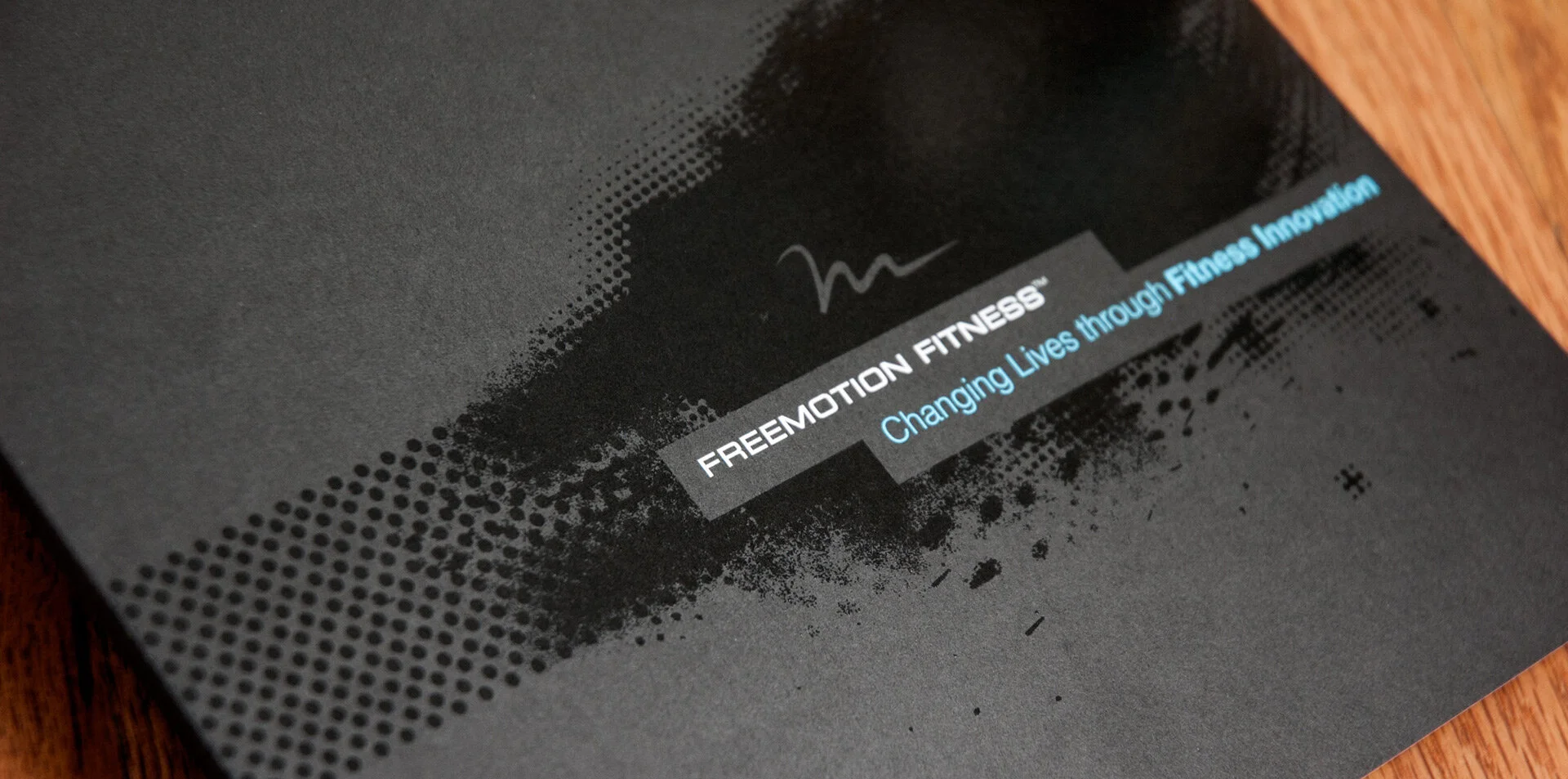 Freemotion sales needed a folder for customers to collect product collateral. We created something worth holding on to. Typically, a spot gloss seeps into uncoated paper, but when you find a great vendor, anything is possible. Using a proprietary print finish, we were able to use our custom-made movement graphics to highlight the brand in a high-end way. Details matter.